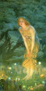 Acharya then left the room and I remained seated at my desk rather dazed with all this new information. The first night I slept peacefully and woke much refreshed - with no remembrance of anything that had taken place during the night. The following night I managed to reach Daphne quite I easily. She had found no difficulty in returning to her cottage from the Fairy Glen - so presumably she has developed sufficient willpower to enable her to move freely from sphere to sphere. She told me that after I had left, an unbelievably beautiful exhibition of dancing had taken place in which the devas, the nature-spirits and even the birds took part. When she made adieus to the Chief, he told her we were welcome to re-visit the valley at anytime. She asked if she would be interested in seeing the Golden City at close quarters. As she was delighted with the idea, we there and then linked hands and reached the landmark for the fifth sphere in a very short time - having stopped en route at the Fairy Glen.
