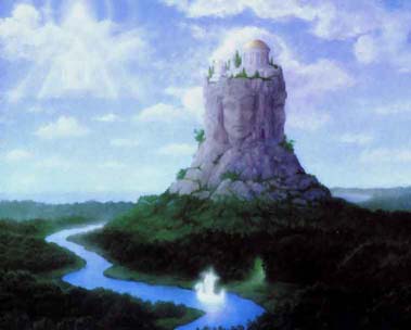 On Wednesday evening I was waiting for Acharya when he arrived in my room on the stroke of 10 p.m. Greeting me with 'If you are ready, let's be on our way,' we started off. We travelled by the same route as before, via the village on the second sphere, the Academy on the third, the Fairy Glen (=narrow valley) on the fourth, the Golden City on the fifth and the lake on the sixth. At this last spot I had time to see that two of the little boats were in use, one on the opposite side of the lake, and the second near the opening to the small lake. I had to look for some time before I could see any motion at all, so slowly did they move. This is indeed an ideal spot for a man desiring solitude. As I had not yet visited the seventh sphere and had no focal point on which to concentrate, Acharya told me to hold his hand. When our surroundings became clear again I saw we were standing on the highest point of a range of mountains which Acharya stated was called 'World's View' - from here people would take a look at the surrounding world which must last them until their next incarnation.