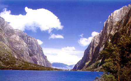 escarpments of the Peruvian Andes on the right branch of the Rio Santa,