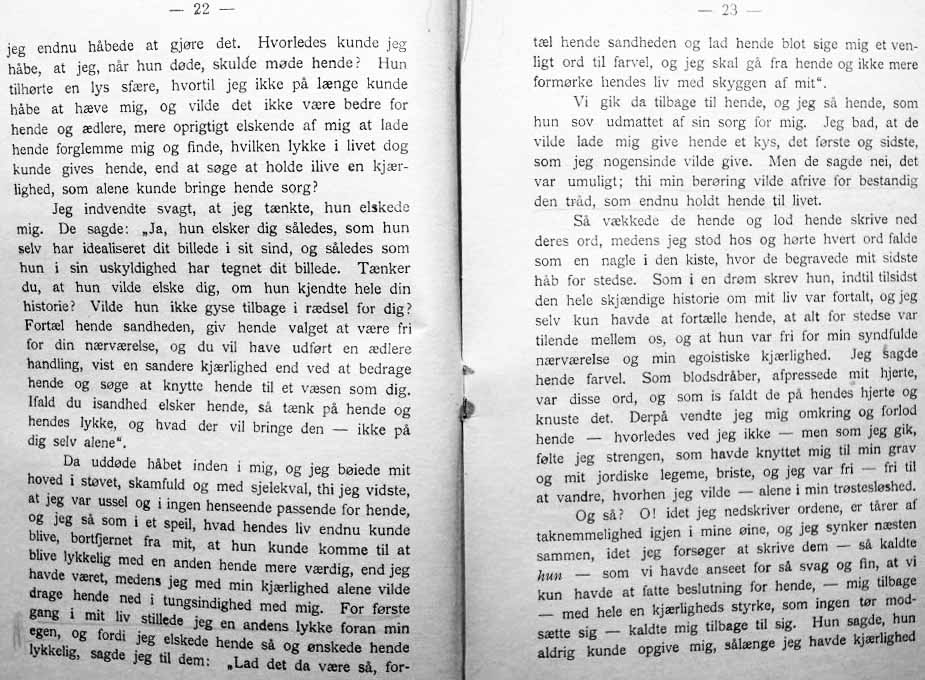 EN VANDRER I ÅNDEVERDENERNE - er oversatt og utgitt av cand. jur. Bernt Torstenson og muligvis brukte den danske oversetter av denne under, nettopp Torstensons oversettelse som grunnlag- da det jo er ganske minimalt som skiller de to språk, slik de var for hundre år siden.