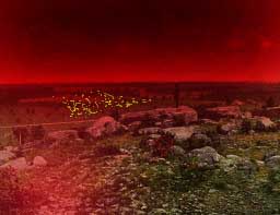 Foran oss lå en veldig bølget slette, hvor det ferdets store masser av mørke ånder. På "Trofasts" initiativ gikk vi opp på en liten høyde for å kunne iaktta deres bevegelser.