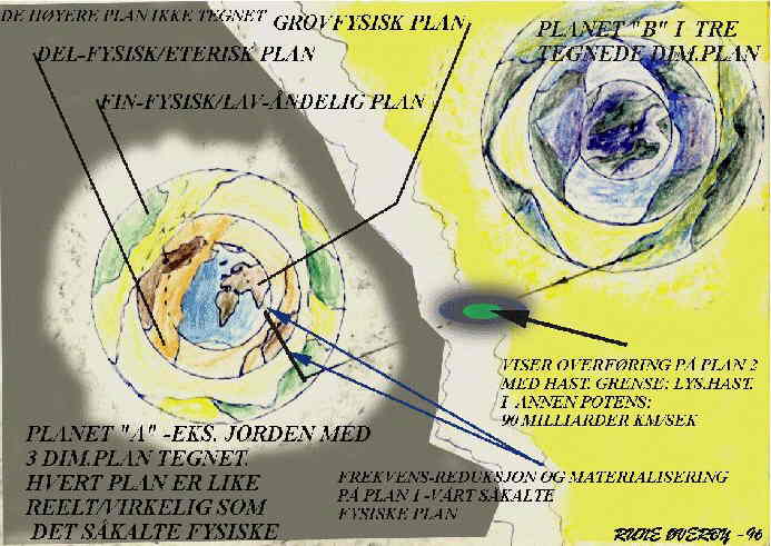 bildet viser hvordan reisene til fjerne kloder i kosmos skjer i de høyere frekvensdimensjoner som omgir jorden