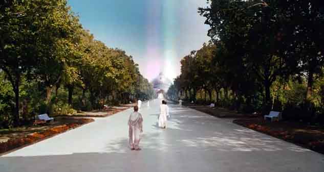 DØDEN FOR EN TROENDE Tilsvarende vil en religiøs - kristen eller muslim - leve videre på sine tankeskapte indre bilder - som sammen med likesinnede troende vesener har tankeskapt sine egen konkrete verdener. Dette fordi de åndelige materier direkte lystrer tanken - uten at de som de tunge fysiske materier må omformes med slit og smerte. Kollektive tankearter har på denne måten kunnet skape alle de vakreste omgivelser som vesener på samme interesse- eller bølgeområde - ubevisst har tankemessig frambrakt. De troende har her tankeskapt de vakreste kirkebygninger, hvori de alene tror seg møte sin Gud. I tillegg har vesener fra høyere kosmiske plan - som innehar en sterkere evne til å materialisere eller tankeskape - "bygd" hele byer og områder i de åndelige verdener som også finnes på jorden. Dette fordi det der ikke er plassmangel - disse åndelige verdener "opptar" i andre frekvenser det enorme rom som omgir de rent fysiske kloder. illustrasjon over de forskjellige plan - beliggende som forskjelligartede frekvenslag rundt om den fysiske jord - der hvert plan tilsynelatende er absolutt fast og virkelig for de som bebor planet. Bildet viser også en "reise" via høyere dimensjonen, mellom to forskjellige planeter/ på høyere astrale nivå. Teosofien forklarer at selv den frekvenssone som ligger tettest på den såkalte fysiske - altså den som kalles den eteriske sone - strekker seg i rommet helt ut til månens bane. Dette utgjør i målestokk med en normal 30cm globus - en eterisk "kule" som går ni meter i radius ut fra denne. ( ill. over er altså ikke i korrekt målestokk). Også Martinus fortalte at grunnen til den store avstand i mellom klodene, var at de åndelige plan skulle ha nok "plass" - skjønt de ligger jo i andre vibr./frekvensplan. ** Altså vil alle vesener etter en viss tid begynne å forstå at "noe er hendt meg" - ja, at det faktisk er død - og gradvis også forstå at det kan sanse og oppleve uten å skulle sanse gjennom den "grove" fysiske kroppen. Men de som forstiller seg en legemlig oppstandelse fra graven - "kjødets oppstandelse" - vil oppsøke graven og sitt begravde legeme og vente der inntil det blir så ulykkelig og tvilende at det åpner seg for hjelp - men de aller fleste vil dog motta denne hjelpen mye før - men dette avhenger altså av dets vilje, tanker og eventuelle stahet.