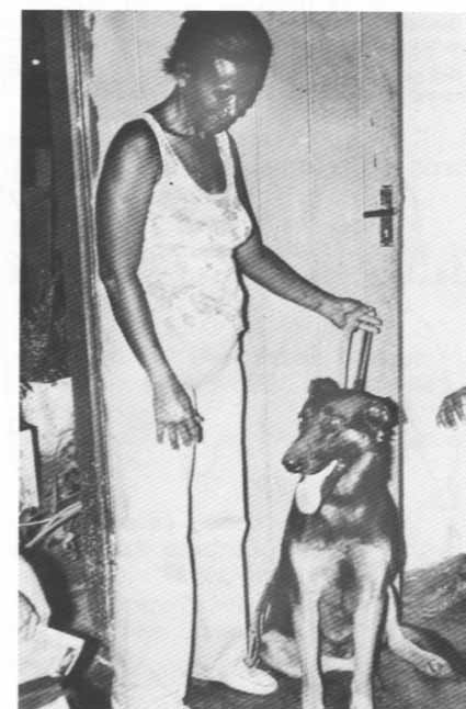 The story Antonio Carlos related to his mother, of the incredible experience, was considerably incomplete and lacked certain details. Though elaborated in logical sequence, the narrative lacked specifics such as the dress of the extraterrestrials, their physical appearance and the equipment they carried. He did not mention to his mother, (picture of her below, together with the watchdog) the interior of their ship, how he was immobilized or transported, and the vague sort of communication they used with him. He couldn't remember the instant of leaving or return or how it was done.