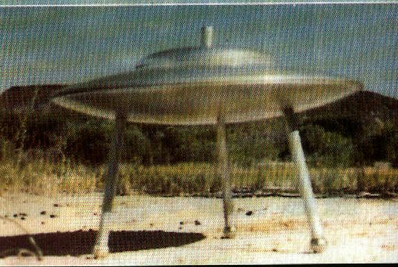 In photo number 5 the spaceship is seen between tree trunks. It hovered in that vicinity for some time. The "ports" around the outer edge of the rim are a part of the propulsion system. No jets or rockets of any kind are employed. The "ports" are never used or left unsealed outside the planet's atmosphere where the magnetic lines of force are further apart, but are hermetically sealed either manually or automatically before leaving a planetary atmosphere. Hermetic sealing is accomplished by removing all force on substances from the basic elements of the parent metals, and a device is used to charge both surfaces to be sealed either positively or negatively, depending on how a certain metal is naturally charged. The sealing of two or more metals cannot be accomplished unless they are first neutralized and then are all charged with the same polarity. The carbon elements, however, being anphoteric combine equally well with positively or negatively charged elements.