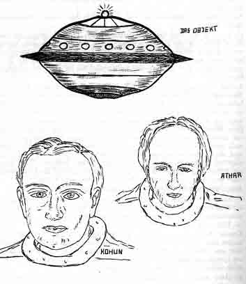 He also said:" ….I understand your hesitation and your doubts, and I think your are right. One can't easily believe in anything of that sort. All the same, I am talking about an adventure that I lived through while I was fully conscious, and which lasted for two months. Yes - I spent two months on Baavi. The journey took an hour and a half. Everything happened very quickly, and as far as that is concerned, I must say that consciousness did not come into the question. The machine - the "valid" - I mean - flew more that gravific speed, and then we were in anti-time. I also know the valid accelerated more before, turning and that it changed course 3times on the way from Earth to Alfa Centauri.."