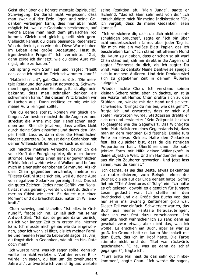 Stephen Turoff, geb. 1947 in England, konnte bereits als Kind Stimmen høren, Wesen sehen die außer ihm niemand sah, und durch seine bloße \r\n Gegenwart sowie durch seine Berührung Menschen heilen. Heute gehört er zu \r\n den anerkanntesten Geistheilern unserer Zeit. Seine Fähigkeit, Seelen in \r\n der Astralebene wahrzunehmen, führte ihn auch zur Begegnung mit Jim, der \r\n zwanzigjährig im ersten Weltkrieg starb und in diesem Buch durch Stephen \r\n Turoff seine Erlebnisse erzählt, nicht die seines Lebens auf Erden, sondern \r\n die seines Lebens nach dem Tod. Der folgende Buchauszug stammt aus Kapitel \r\n vier, in dem Jim mit seinem Lehrer Chan auf eine niedere Astralebene reist, \r\n um darin festgehaltenen Seelen zu helfen sich daraus zu lösen, und \r\n weiterzugehen. Dabei lernt er unter anderem die Auswirkung des \r\n schöpferischen Prinzips der Gedanken kennen. Zwei \r\nJahre lang kommunizierte der Autor mit Jim, der