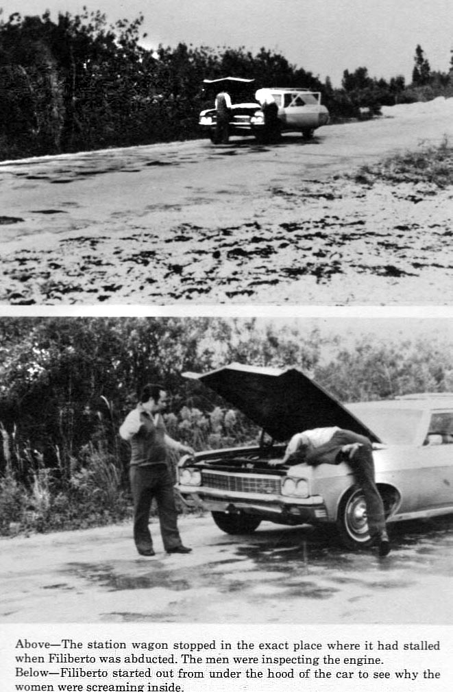 Fernando stopped at the nearest facility and called the police to report the problem, but they told him to go to a pay phone and callback. He got back into the car, which started OK this time, and they drove to Hialeah to a pay phone. He called the police again and reported what had happened and Cardenas' disappearance. Then he called Cardenas' wife, Iris, and told her that an object with a large light had taken Filiberto. She wanted more details and he tried unsuccessfully to explain something he himself didn't understand. Mrs. Cardenas began to cry.