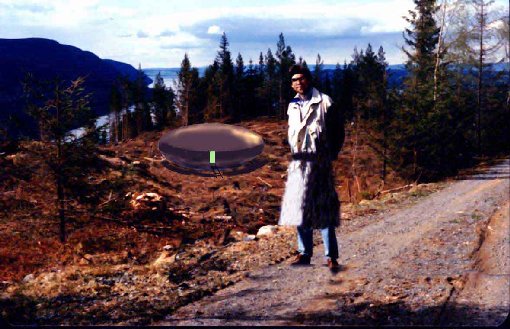 nu ingeniørens egen beretning: datakomponert bilde av møtet med den frakk-kledde besøkende som ba om vann.....(bilde lagd av R Ø i des.99) På daværende tidspunkt arbejdede jeg for ,,Contactor", et