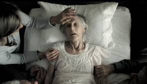 A young woman with a pale face and weakened body was by her side stroking her gray hair. From time to time she would wipe the tears that streamed from her eyes.