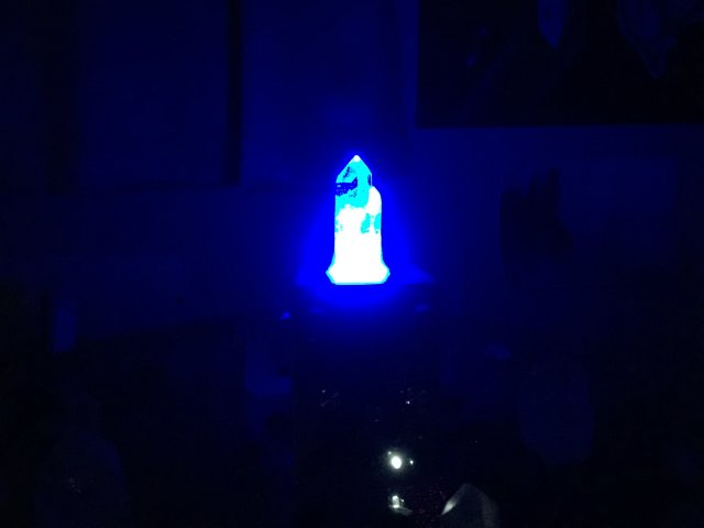 communication device sending music to other planets in The Galaxy by FTL (hyperspace). The blue haze