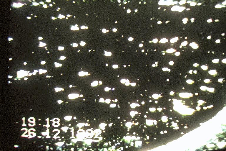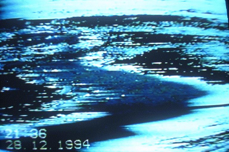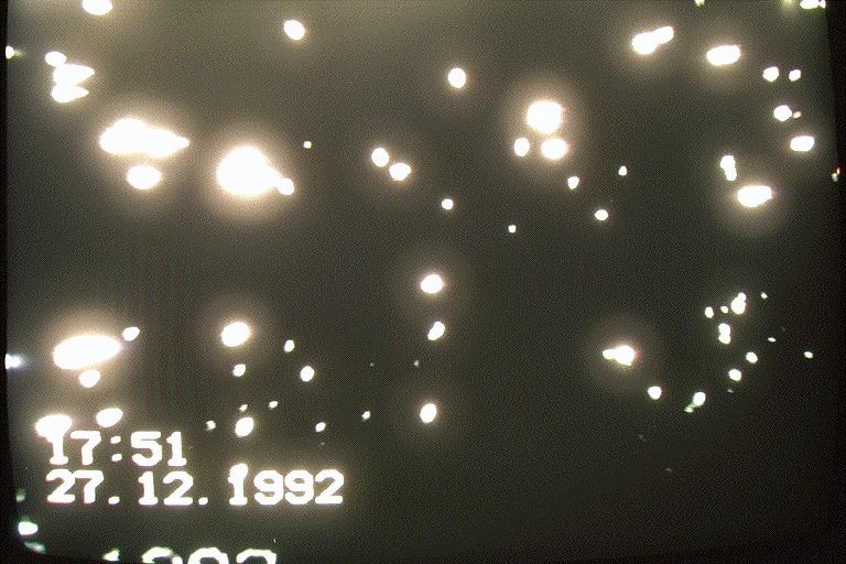 These pictures are transferred from the spacepeople civilisations by a hyperspace wavepattern receiver (Receives signals from a different spectrum that travels mutiple times faster than the speed of light). The pictures are sent from alien spacecrafts who belongs to the galactic civilisation. The pictures shows landshapes, cities and so on from inhabited planets in other solarsystems in our and other galaxies. The pictures are sent to the receiving equipment by a intergalactic network. This network operates on a spectrum that allows a signal to travel 10000 light years in 1 nano second. Some of the pictures shows alien constellations of stars viewed from alien planets and from different positions in space. The limitation in the graphic resolution of the pictures have its reason in that the receiver is a prototype. The pictures are filmed with a videocamera targeted against the monitor attached to the receiver. This because the deflection frequencies of the monitor connected to the receiver are not 100% compatible with normal videostandard. The horisontal and vertical frequencies belonging to our videostandard is transmittet through the hyperspace to those at the other end to tell them about the format we like to receive the signals. The videosignals who comes back are not always totaly within this format so a adjustment of the deflection frequencies of the monitor is nessesary. This is the reason why the pictures have a timestamp on them. Then it's used a normal photo camera to photograph the TV screen showing the video with the pictures. This photographs are then scanned into the computer by a normal scanner. This process cause a resolution reduction.
