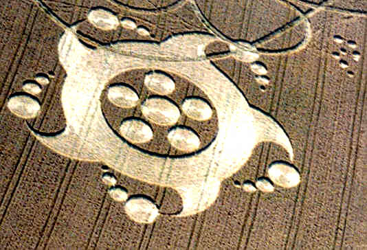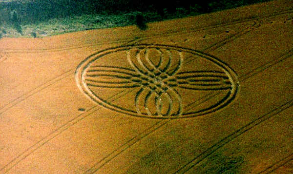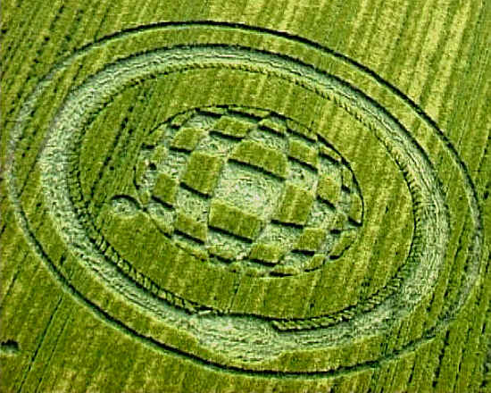 This pictures shows marks in cornfields generated by aliens using interdimensional technology.