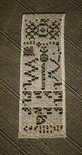 This cropcircles represents an alien responce to a radiomessage sent earlier from Earth into outer space.