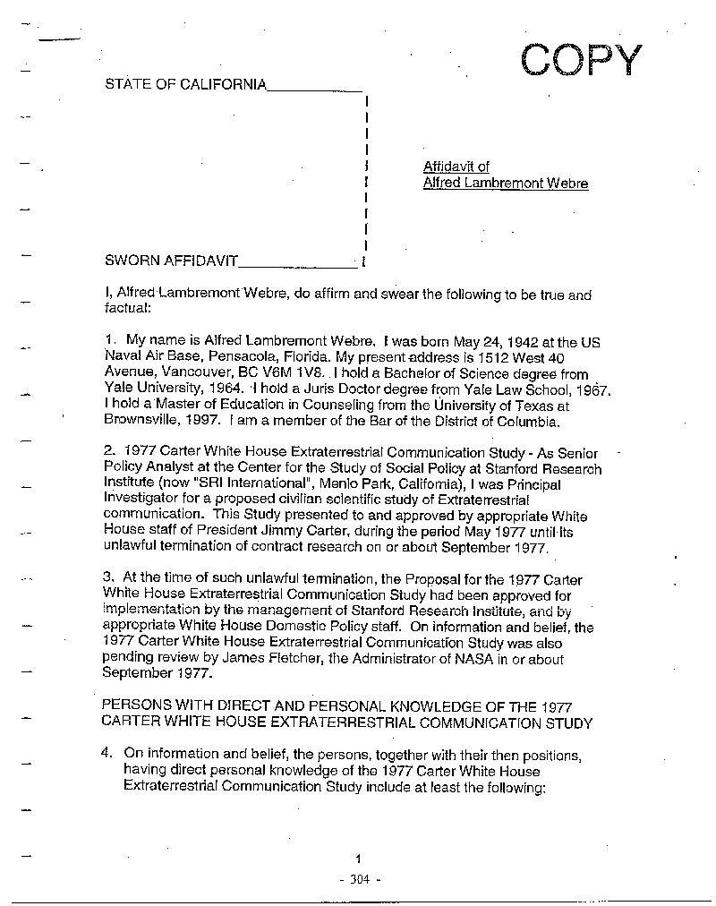 Those who doubt these assertions should carefully read the testimony of dozens of military and government witnesses whose testimony clearly establishes these facts. Given the vast and profound implications of these statements, whether one accepts or seriously doubts these assertions, all must demand that congressional hearings be convened to get to the truth of this matter. For nothing less that the human future hangs in the balance.