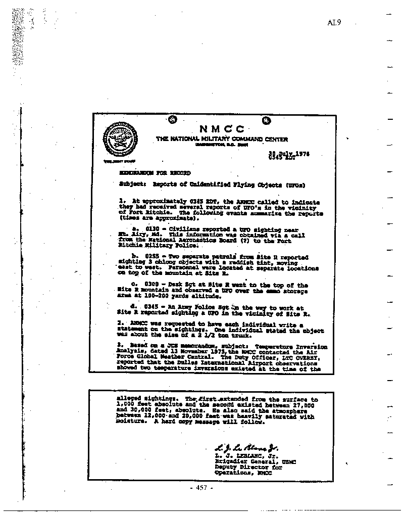 *9.0 APPENDIX AI. UNITED STATES GOVERNMENT DOCUMENTS RELATED TO UFOs