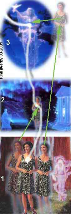 flesh-body. At the moment of death, the cord joining the physical and spirit bodies (the "Silver Cord" of the Christian Bible) thins and parts, and the spirit drifts off. Death has then taken place. But birth into a new life, for the "cord" is similar to the umbilical cord which is severed to launch a new-born baby to a separate existence. At the moment of death the Glow of Life-force is extinguished from the head. This Glow also can be seen by a clairvoyant, and in the Christain Bible is referred to as "The Golden Bowl". Not being a Christian I am not familiar with the Book, but I believe there is a reference to "Lest the Silver Cord be severed, and the Golden Bowl be shattered". Three days, we say, is the time it takes for a body to die, for all