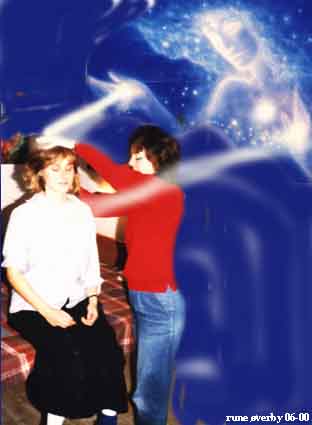 - Som jeg før har sagt, må du forestille dig den vej, du ville følge for at komme til den syge persons hus, og så i din fantasi lade dit legeme rejse til dette hus, hvor den person bor, som du vil helbrede. Forestil dig at dit overjeg (Det høyere JEG - overbevisstheten-) er ankommet til huset. Forestil dig at du rækker en arm, en hånd ud og rører ved personen. Forestil dig at en strøm af livgivende kraft går gennem din arm og ind i personen i form af et levende blåt lys. Forestil dig at denne person langsomt bliver helbredt. Med tro, med lidt træning, kan det gøres. Det bliver gjort hver dag i det fjerne østen.