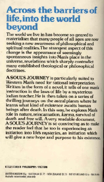“While in a state of despair after the death of his brother, the author is visited by Acharya, an Indian mystic. Using astral projection, Acharya takes him out of the physical world onto the astral planes of the 'afterlife'. Each astral plane teaches something new about life and death, karma and the ego. Through a series of meetings with the 'dead' - including his brother - the author comes to realize how irrational it is to fear death. Through his teaching, Acharya opens up a whole vision of life in the world that follows this, a world where anything is possible. Based on notes taken immediately following out-of-body experiences, this book is both enlightening and absorbing. It gives the reader a direct insight into the unknown mysteries of life and death.”