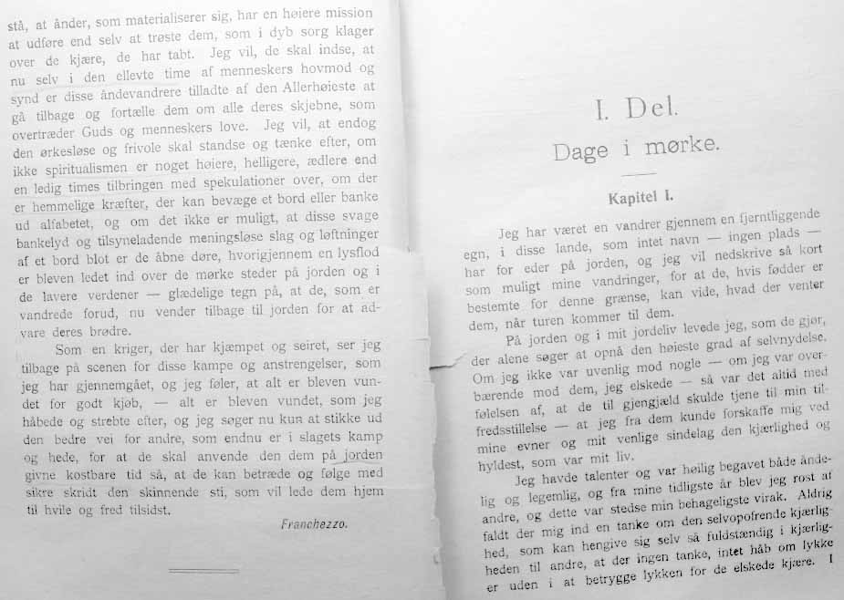 spiritismen mest i Norge, men han har ogsaa været paa foredragsturne i Danmark.