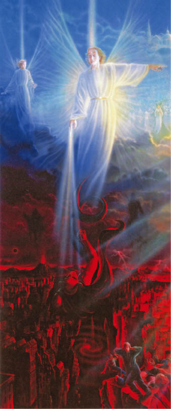 Mens jeg sto slik og så meg rundt, ble de mørke ånder og deres hersker oppmerksomme på min tilstedeværelse. Keiserens ansikt fikk et vilt og aggressivt uttrykk, og med en arrig stemme spurte han hvem jeg var, og hvordan jeg turde våge å trenge meg inn til ham. Jeg svarte ham, at jeg var en fremmed, som for nylig var kommet til denne sfære, og at jeg var forundret over å finne et slikt palass i åndeverdenen.