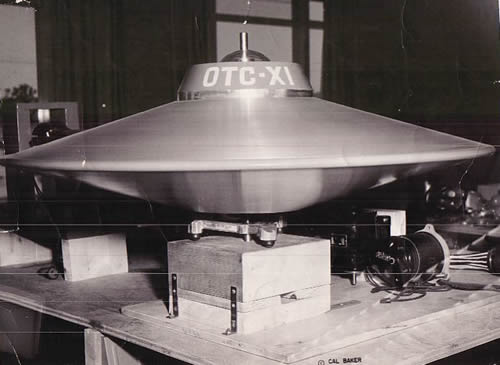 Ring has provided a number of photographs of the OTC-XI developed by Carr. These photographs had previously not been published. The photos showed that Carr had indeed succeeded in building a number of models including the 45 foot prototype spacecraft (see photo below on left). The photos dispel the view that Carr had not succeeded in developing a full scale prototype spacecraft. Ring’s photos are material evidence that he did indeed collaborate with Carr on the OTC-X1, as he claims.