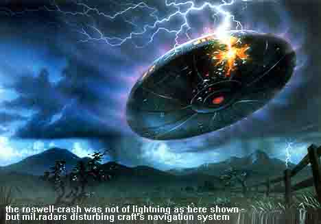 "Nej, mandskabet på fire personer, som stammer fra en af de civilisationer, der hjælper Jorden, befandt sig i et lille rumskib på en rekognosceringstur i dette område. To blev dræbt i styrtet, en levede kortvarigt, og den anden, som ikke var blevet alvorligt såret, blev taget med af en af flyvevåbnets generaler til et hospital på en nærliggende militærbase og blev snart derefter fløjet til en base i midt-vesten af USA, hvor han levede i over et år. Selvom han aldrig blev mishandlet, var han godt klar over, at han aldrig mere skulle se sin familie eller sit hjemland, og det kan siges, at han døde af et knust hjerte."