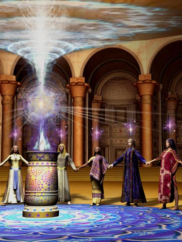 Cylophestra hann precis uppfånga Sira när hon förlorade medvetandet. Suk-ptah gick fram till henne och förde lampan med den heliga elden runt hennes huvud. Hon öppnade ögonen och kved lite, medan Månprästinnan smekte och tröstade henne. Hierofanten lät lampan vidröra hennes olika chakras. Det dröjde en lång stund, sedan steg hon plötsligt upp, smålog mot vännerna och sade: