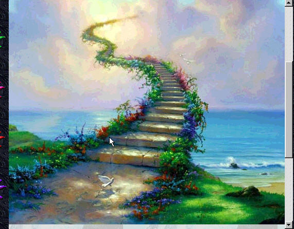 Bildet viser et menneske på det jordfysiske plan og dets forbindelse til et av sine høyere åndelige legemer som befinner seg i et av klodens finstoffelige/åndelige plan som ligger som "plan/verdener" utenfor den fysiske klode og der stoffet har en høyere vibr.frekvens og noe andre naturlover virker. En interdimensjonell "UFO" er også inntegnet til høyre på linjen mellom dimensjonsplanene - med "teknisk"evne til å ferdes mellom flere av Jordens mange plan eller materie-frekvens-verdener. Spesielle vesener  - de såkalte "engler" - har denne samme evne - da de kan ferdes på mange plan i sitt naturlige virke. Men uten at de trenger vinger for aerodynamisk løft - de er kun auraens felter som clairvoyante kan se. Merk: de åndelige eller finstoffelige plan er like virkelige/"fysiske" når man ER på disse plan.