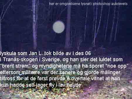 Utflyttet nordmann i Sverige opplever en stor lyskule på nær hold i des.06 men har med kamera og tar et bilde
