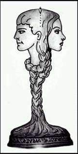weibliches Doppelhaupt darstellte, welches von dem Frauenzopf wie von einer