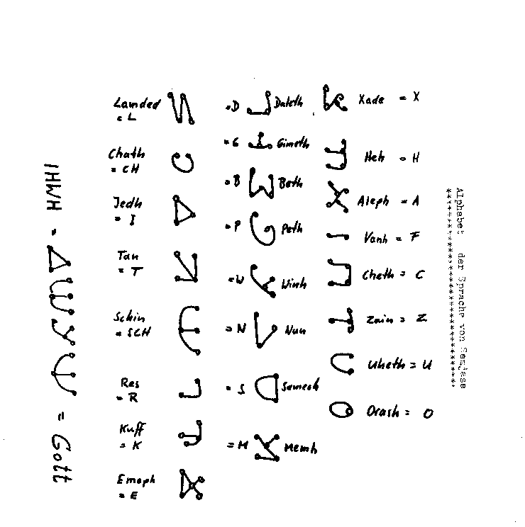Det Erranske alfabet nedskrevet av Semjase selv.